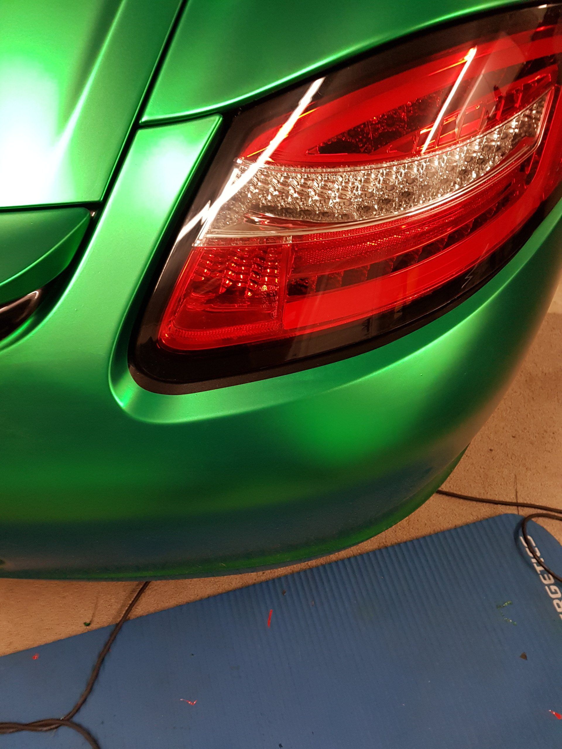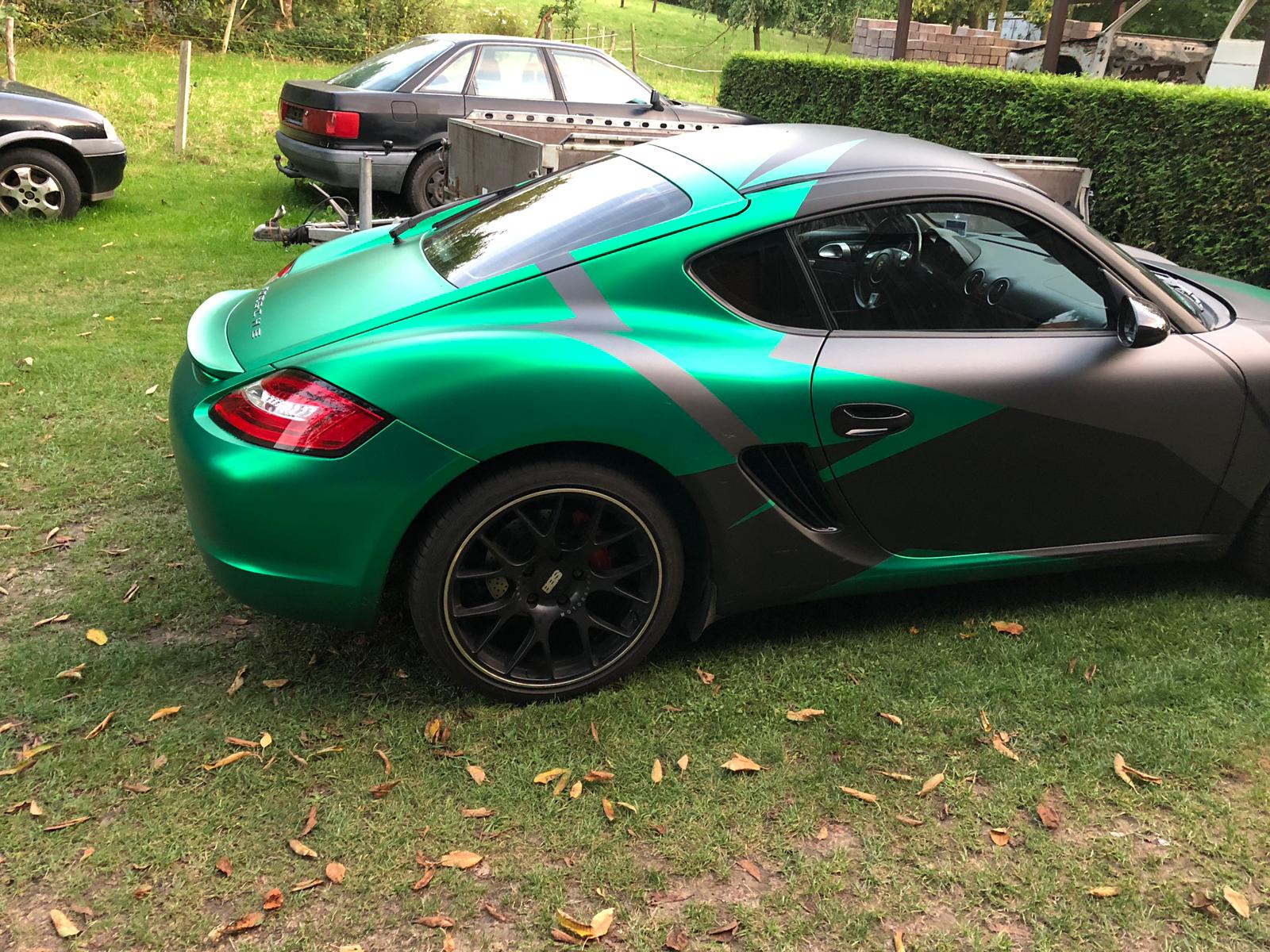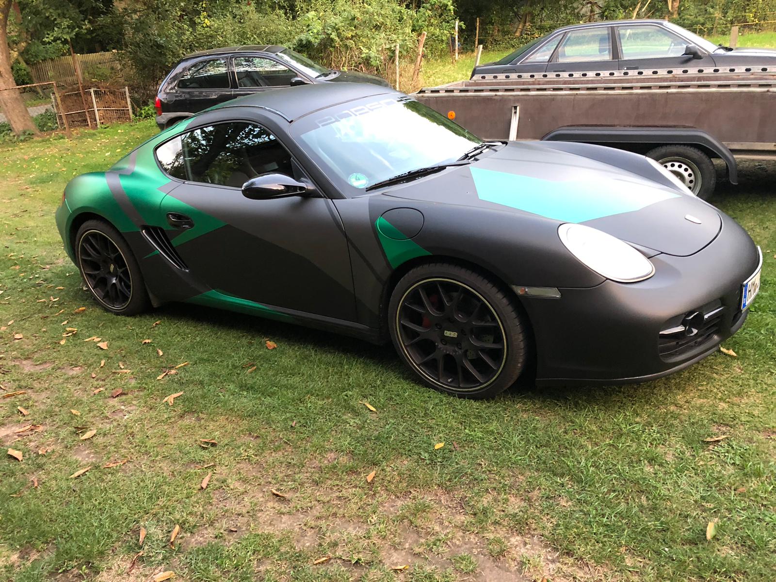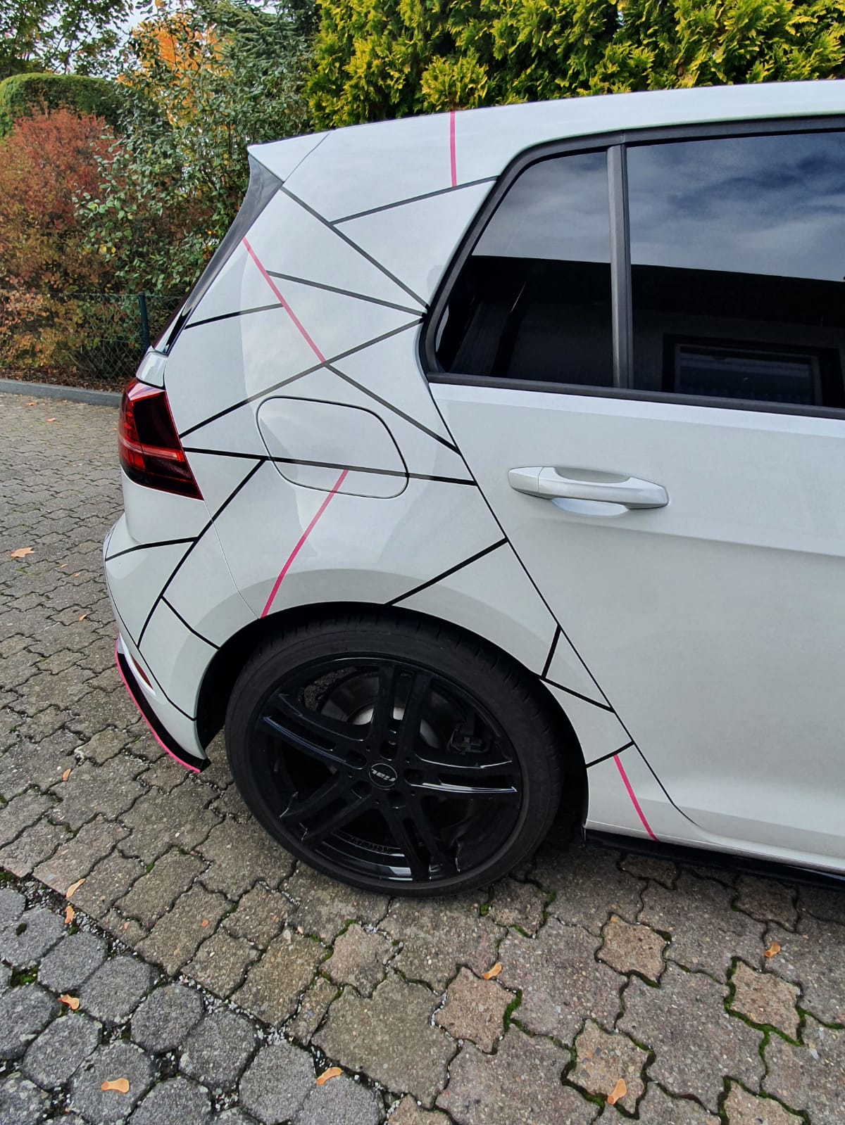 Mit etwas Folie und dem nötigen knowhow wurde aus der Grundlackierung schwarz glänzend metallic ein absolutes Unikat auf der Straße! Zu der Vollfolierung in matt schwarz von 3M und flexchrom british racing green von MacTac, rundeten wir das Design in charcoal dark grey ebenfalls von 3M ab.