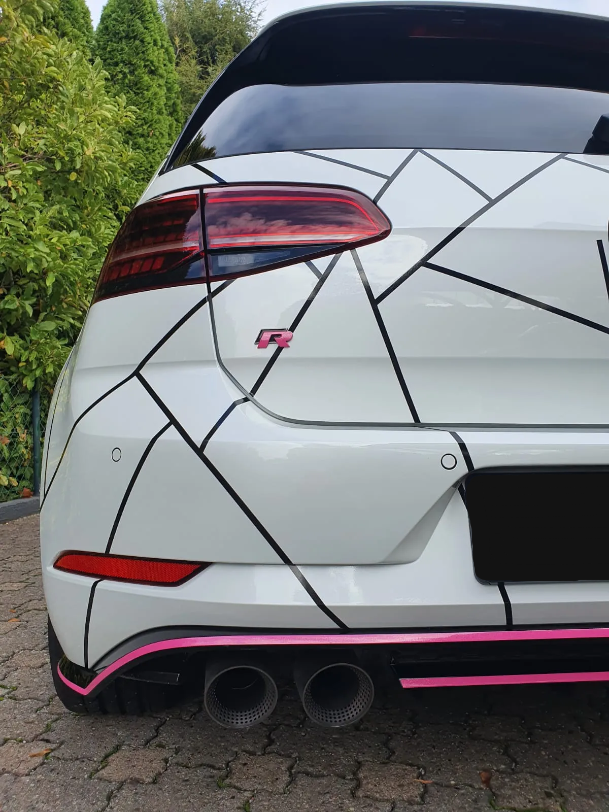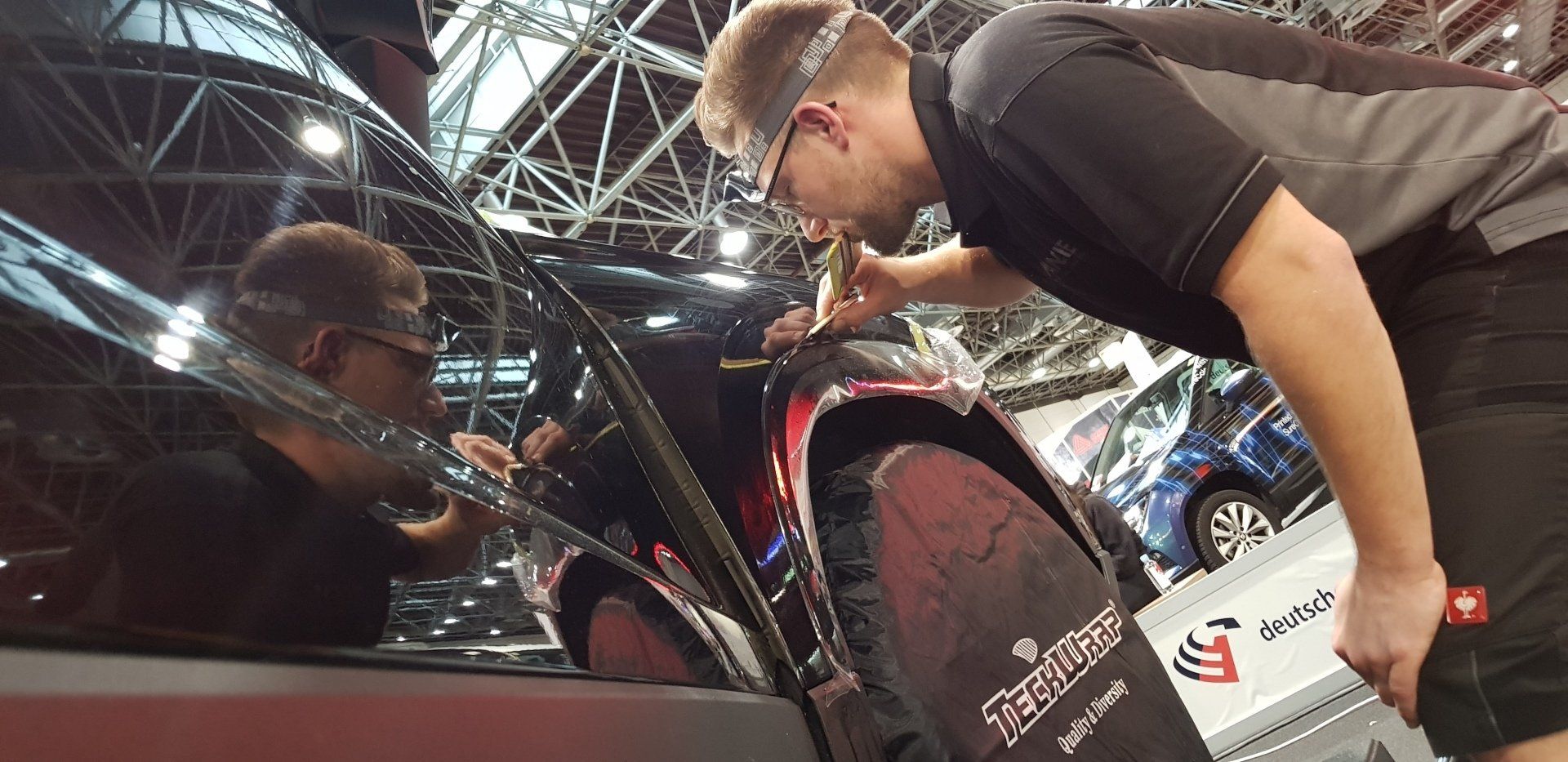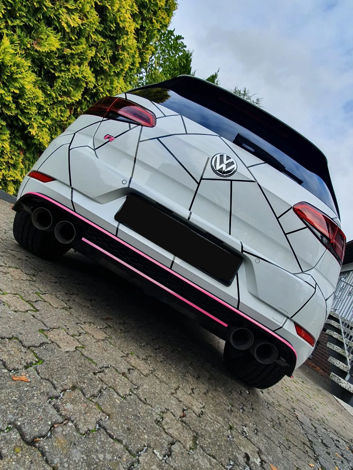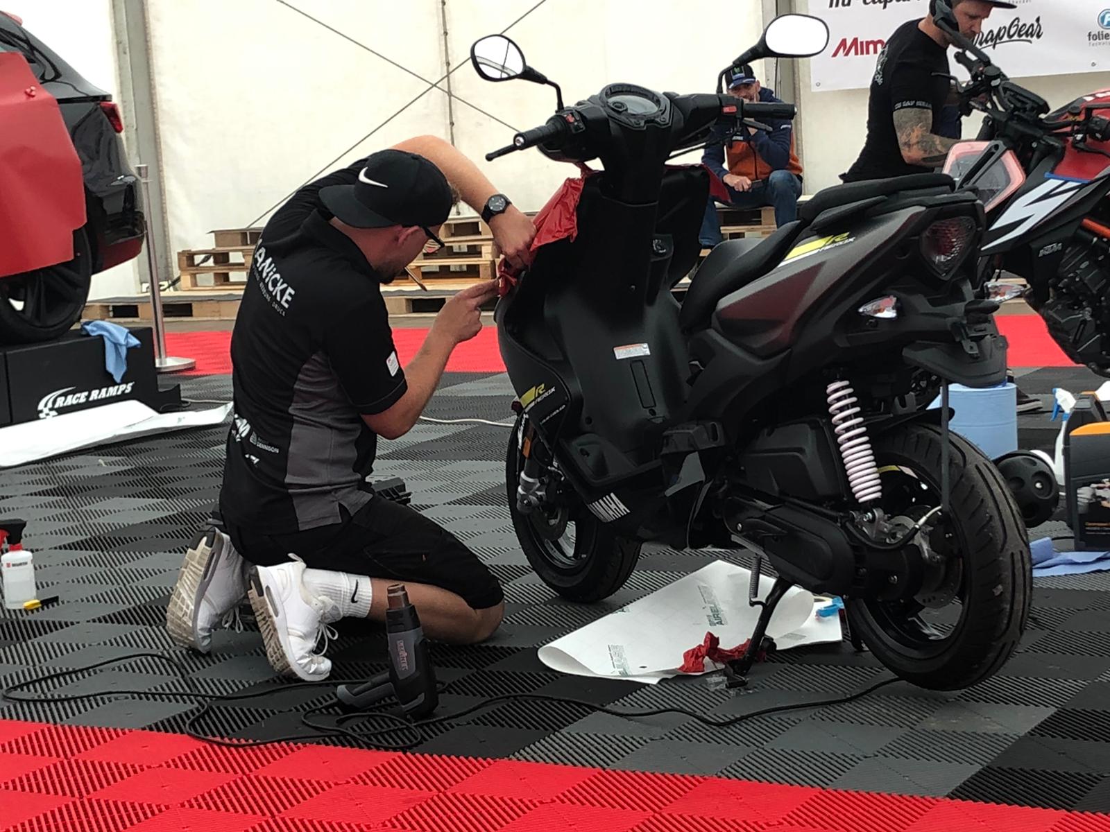 Mit etwas Folie und dem nötigen knowhow wurde aus der Grundlackierung schwarz glänzend metallic ein absolutes Unikat auf der Straße! Zu der Vollfolierung in matt schwarz von 3M und flexchrom british racing green von MacTac, rundeten wir das Design in charcoal dark grey ebenfalls von 3M ab.