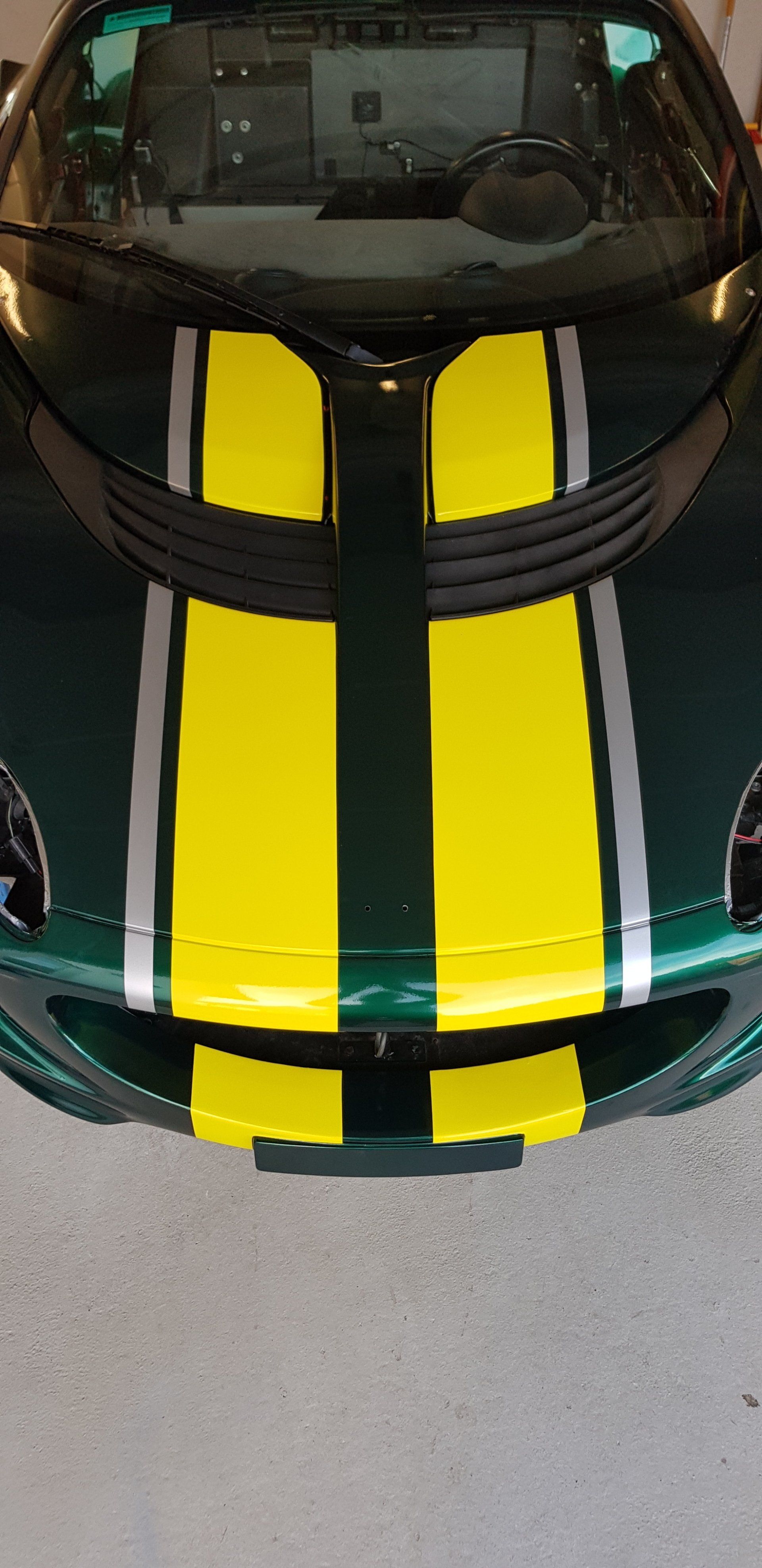 Kombiniert mit einem coolen Racedekor und einem schicken Digitaldruckaufkleber in der Frontscheibe, wird aus dem ursprünglich orangenen Lotus ein echter Eyecatcher!