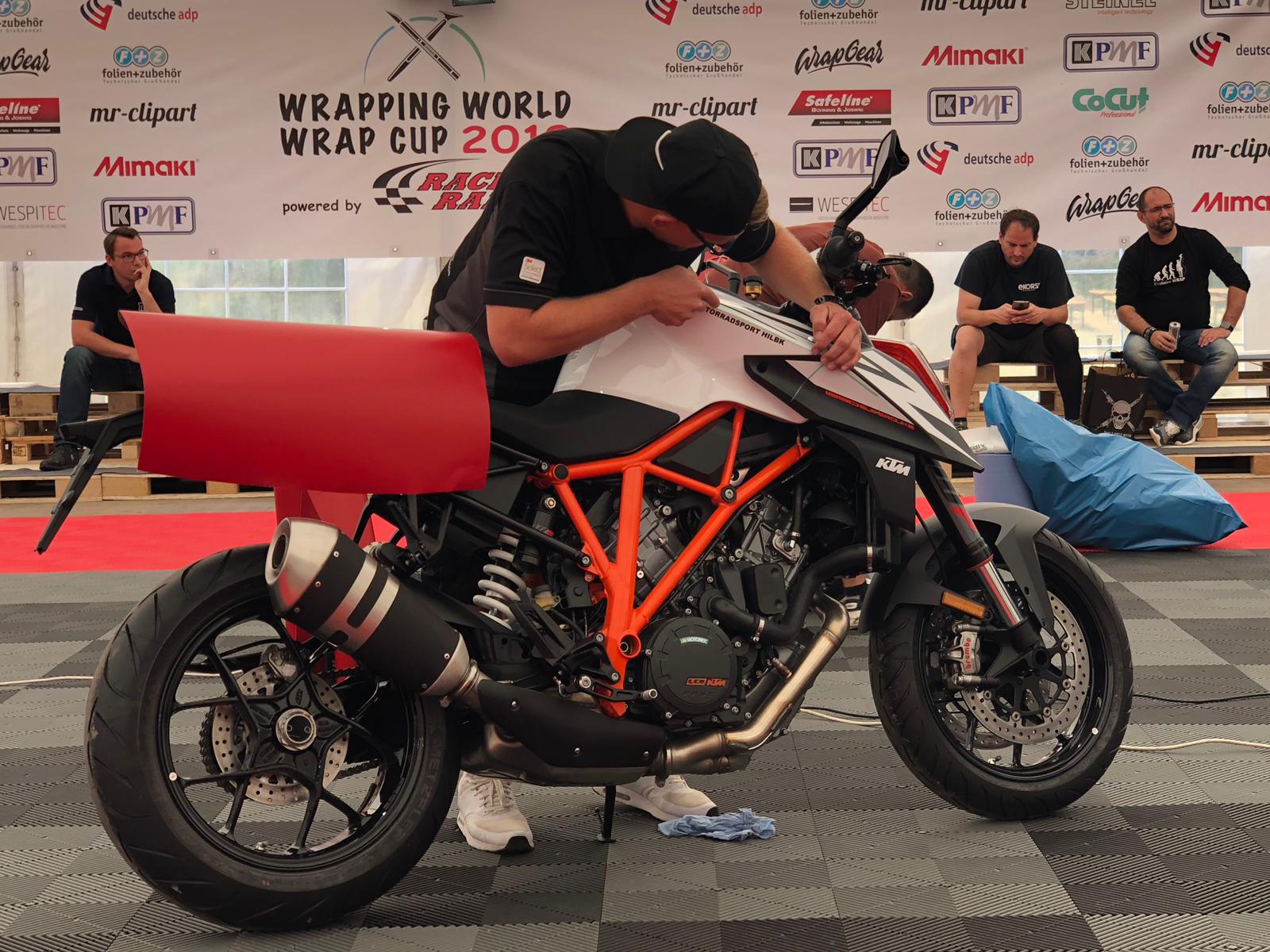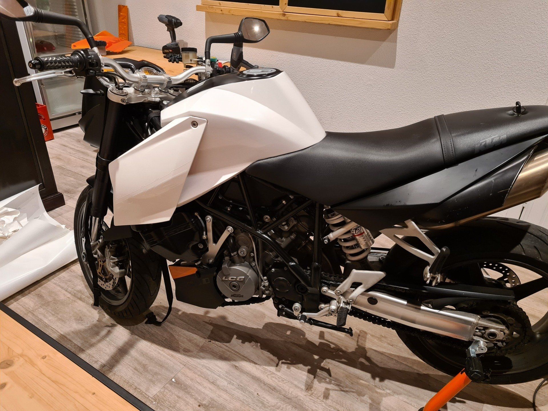 Dieses Schmuckstück wurde vom typischen KTM Style in orange auf weiß glänzend aufgefrischt. Tank, Windschutz und kleinere Anbauteile wurden bis ins allerkleinste Detail in einem cleanen weiß von OraCal foliert.